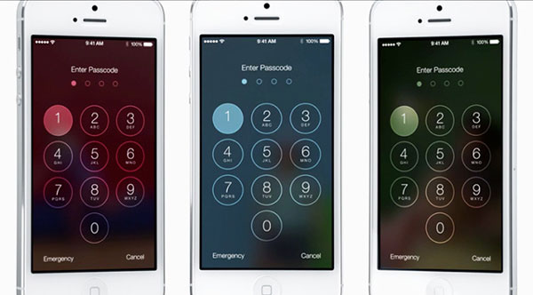 จากภาพด้านบน เราจะเห็นได้ว่า เมื่อเราเปลี่ยนสีแบ็คกราวน์ ตรงปุ่มกดก็จะเปลี่ยนสีไปตามแบ็คกราวน์นั้นๆ ด้วยเช่นกัน สมมติว่า แบ็คกราวน์เป็นสีแดง ปุ่มกดก็จะเป็นสีแดง (แต่โทนอ่อนกว่า) ซึ่งจุดนี้ ตีความได้ว่า iPhone 5S อาจจะมีหลายสี ตามข่าวลือก่อนหน้าครับ ซึ่งผู้ใช้จะสามารถเปลี่ยนสีของ อินเทอร์เฟส ได้ตามสีของตัวเครื่อง หรือใช้สีตามใจชอบได้นั่นเอง