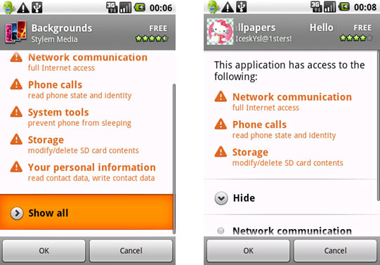 ตามปกติแล้ว ก่อนที่เราจะทำการติดตั้งแอพพลิเคชั่นใดๆ บนอุปกรณ์แอนดรอยด์ (Android device) ระบบจะแสดงหน้าจอหนึ่งขึ้นมา ซึ่งเป็นหน้าจอของ Permission ทั้งหมด ที่แอพพลิเคชั่นดังกล่าวต้องการจะใช้ ไม่ว่าจะเป็น การเข้าไปในส่วนของการเชื่อมต่อ (Network communication) หรือ การเข้าไปในส่วนพื้นที่เก็บข้อมูล (Storage) เป็นต้น ซึ่งบางแอพพลิเคชั่น ก็จำเป็นที่ต้องขอ Permission จากผู้ใช้งาน แต่ในบางครั้ง การขอ Permission ในบางเรื่อง ก็ไม่จำเป็นเสมอไปครับ อย่างเช่น เราจะดาวน์โหลดเกมๆ หนึ่งมาเล่น แต่แอพพลิเคชั่นเกมดังกล่าว ขออนุญาตเข้าไปในส่วนของ contact ของเรา ซึ่งฟังดูแล้ว ไม่ make sense ครับ เป็นต้นครับ