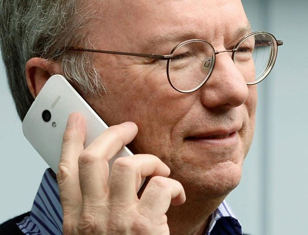 [15-กรกฏาคม-2556] ดูเหมือนว่า ข่าวลือ เกี่ยวกับ Motorola Moto X ใกล้จะเป็นความจริงมากขึ้นทุกทีแล้ว เมื่อล่าสุด ได้มีผู้สังเกตเห็นว่า สมาร์ทโฟนที่ Eric Schmidt ประธาน Google ถืออยู่นั้น คล้ายกับ Motorola Moto X ที่มี ภาพหลุด มาก่อนหน้านั้นเป็นอย่างมากเลยทีเดียว