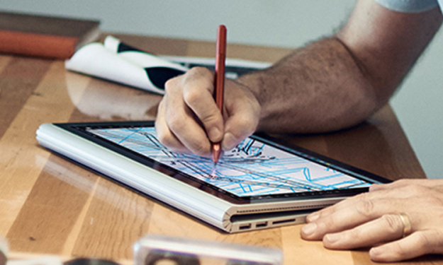 ส่วน Surface Book โดดเด่นด้วยการถอดหน้าจอแสดงผลออกมาเพื่อใช้งานในรูปแบบเท็ปเล็ตได้ นอกจากนี้ยังสามารถใช้งานร่วมกับปากกา Surface Pen สำหรับเขียนบนหน้าจอ ส่วนระบบยืนยันตัวตนของ Surface Book มาพร้อมกับเทคโนโลยี Windows Hello ที่สามารถล็อกอินเข้าสู่หน้าเดสท็อปผ่านการสแกนใบหน้าของผู้ใช้งานได้เลยทันที
