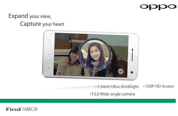 ไม่เพียงเท่านั้น OPPO Find Mirror ยังมีกล้องหน้าที่โดดเด่นกว่าสมาร์ทโฟนทั่วๆ ไปที่ไม่เพียงแค่มีความละเอียดสูงถึง 2 ล้านพิกเซล แต่ยังมีเลนส์พิเศษ ultra wide angel เก็บภาพได้มากยิ่งกว่าสมาร์ทโฟนทั่วๆ ไป