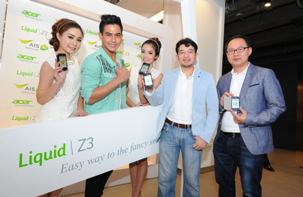นายวิวัฒน์ เต็มสุขถวิล ผู้จัดการฝ่ายกลุ่มผลิตภัณฑ์โมบิลิตี้ บริษัท เอเซอร์ คอมพิวเตอร์ จำกัด กล่าวว่า Acer Liquid Z3 แอนดรอยด์สมาร์ทโฟนที่รองรับการใช้งาน 2 ซิม ที่เปิดตัวในวันนี้นับเป็นการเปิดตัวประเทศแรกของโลก โดยทางเอเซอร์ได้จับมือกับทาง AIS ในการเปิดตัวสมาร์ทโฟนที่มาพร้อมโหมดการใช้งานพิเศษที่ออกแบบมาเพื่อให้เหมาะกับผู้ใช้งานที่แตกต่างกัน เช่น Senior Mode โหมดการทำงานที่เหมาะสำหรับผู้สูงวัย Basic Mode (Kid mode) โหมดการทำงานสำหรับเยาวชน, Classic mode โหมดการทำงานสำหรับคนวัยทำงานทั่วไป และ Keypad mode โหมดสำหรับกลุ่มผู้ใช้ที่เปลี่ยนจาก feature phone มาใช้ smart phone พร้อมฟังก์ชั่นการทำงาน Float Caller Only Acer SH ที่ช่วยให้การใช้งานต่อเนื่องไม่สะดุด แม้มีสายเรียกเข้า. Acer Liquid Z3 หน้าจอสัมผัสขนาด 3.5 นิ้ว ความละเอียด HVGA 320 X 480 พิกเซล ระบบประมวลผล Dual Core 1GHz ความละเอียดกล้อง 3 ล้านพิกเซล หน่วยความจำ 4 GB เพิ่มพื้นที่หน่วยความจำด้วยการรองรับ Micro SD ได้สูงสุดถึง 32 GB ระบบปฏิบัติการแอนดรอยด์ 4.2.2 เจลลี่บีน เวอร์ชันล่าสุดจากระบบปฏบัติการแอนดรอยด์ รองรับระบบเครือข่าย WiFi, Bluetooth และ 3G ครบครันด้วยคุณสมบัติด้านเอนเตอร์เทนเมนต์ มีให้เลือกถึง 2 สีอินเทรนด์ คือขาวและดำมาพร้อม flip cover ดีไซน์เรียบเท่ห์ ในราคา 2,590 บาท