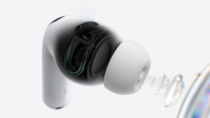 AirPods Pro 3 มาพร้อมสถาปัตยกรรมเสียงอะคูสติกแบบมัลติพอร์ตใหม่ที่จะทำการควบคุมการไหลของอากาศที่พาเสียงเข้าสู่หูได้อย่างแม่นยำ ซึ่งจะมอบประสบการณ์การฟังเชิงมิติพื้นที่อันน่าทึ่ง สถาปัตยกรรมที่ปรับมาใหม่ยังช่วยให้ EQ แบบปรับได้เองพลิกโฉมการตอบสนองต่อเสียงเบส ขยายความกว้างของมิติเสียงชนิดที่ไม่ให้พลาดเสียงเครื่องดนตรีแม้สักชิ้น และนำความชัดเจนของเสียงสู่ระดับความถี่ที่สูงกว่าเดิมทั้งในการฟังเพลง รับชมรายการต่างๆ และการคุยสาย ด้วยการฟังเสียงภายนอกที่ปรับแต่งมาให้เหมาะกับคุณมากขึ้น เสียงของผู้ใช้และคู่สนทนาจะฟังเป็นธรรมชาติมากกว่าที่เคย ช่วยให้พวกเขาสามารถรับรู้ความเป็นไปรอบตัวได้โดยไม่พลาดแม้สักจังหวะ