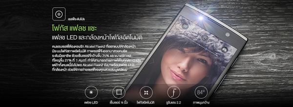 นอกจากนั้นกล้องหน้าของ อัลคาเทล แฟลช 2มาพร้อมกับ LED แฟลช ได้รับการออกแบบมาเพื่อการถ่ายเซลฟี่ที่ดีที่สุดราวกับมืออาชีพ