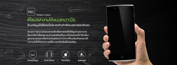 อัลคาเทล แฟลช 2 มาพร้อมดีไซน์โค้งมนซึ่งได้รับการออกแบบตามหลักสรีรศาสตร์เพื่อให้พอดีที่สุดบนมือของคุณ ตัวเครื่องด้านหลังประกอบด้วยแผ่นป้องกันการลื่น สามารถกันรอย และมีคุณสมบัติสิ่งสกปรกที่ติดอยู่บนตัวเครื่องเพื่อให้ตัวเครื่องสะอาดสะอ้านตลอดเวลา ในขณะที่ตัวเครื่องถูกออกแบบมาให้มีความสมดุลเพื่อให้คุณสามารถเข้าถึงทุกฟังก์ชั่นได้ด้วยมือเดียว