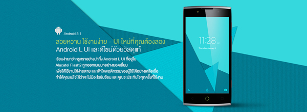 สัมผัสประสบการณ์น่าตื่นตาที่มาพร้อมความเรียบง่ายแต่หรูหราด้วยระบบปฏิบัติการ Andriod L UI ใน Alcatel Flash 2 เน้นการตอบสนองทุกการใช้งานได้อย่างง่ายดายและตอบโจทย์พฤติกรรมการใช้ของผู้ใช้มากที่สุด