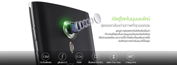 ด้วยเทคโนโลยี gSight ที่มาพร้อมกล้อง13ล้านพิกเซล อีกทั้งยังมีรูรับแสง ƒ/2.0 ทำให้กล้องหลังสามารถเก็บภาพสวยสดคมชัดสมจริงยิ่งขึ้น ส่วน RealTone Dualแฟลช จะช่วยให้คุณถ่ายภาพได้อย่างชัดเจนแม้อยู่ในสภาวะแสงน้อยในขณะที่ยังคงโทนสีผิวที่ทำให้รูปที่ถ่ายออกมาดูเป็นธรรมชาติที่สุด