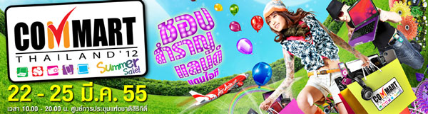 ในวันพรุ่งนี้ งาน Commart Thailand 2012 งานแสดงสินค้าไอที ประเภทโน๊ตบุ๊ค, เน็ตบุ๊ค, คอมพิวเตอร์พีซี, แท็บเล็ต และอุปกรณ์เสริมต่างๆ ก็จะเปิดฉากขึ้นแล้ว โดยงาน Commart Thailand 2012 นี้ จะจัดขึ้นระหว่างวันที่ 22-25 มีนาคม 2555 เวลา 10.00 - 20.00 น. ณ ศูนย์การประชุมแห่งชาติสิริกิติ์ ซึ่งนอกจากจะมีโน๊ตบุ๊ค ทั้งรุ่นใหม่นำมาเปิดตัว รวมไปถึงโน๊ตบุ๊คลดราคา จัดโปรโมชั่น ลด แลก แจก แถม กันอย่างกระหน่ำแล้ว ผู้ที่ชื่นชอบผลิตภัณฑ์ประเภท POST-PC หรือแท็บเล็ต (Tablet) ก็ไม่ควรพลาดเช่นกันครับ และแว่วๆ มาว่า จะมีการนำ The new iPad (iPad 3) มาโชว์กันในงานนี้ด้วยเช่นกันครับ ซึ่งเว็บไซต์ techmoblog จะรายงานให้ทราบกันอย่างแน่นอน