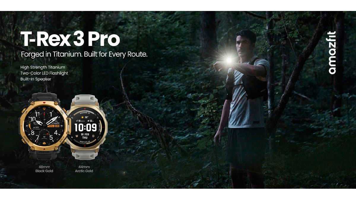 Amazfit (อเมซฟิต) T-Rex 3 Pro สมาร์ทวอทช์รุ่นเรือธงใหม่ล่าสุดจาก Zepp Health (NYSE: ZEPP) ที่ออกแบบมาเพื่อนักวิ่งเทรล นักกีฬาสายอึด และนักผจญภัยกลางแจ้งอย่างแท้จริง มาพร้อมสเปกระดับท็อป หน้าจอ AMOLED กระจก Sapphire Glass กันรอยขีดข่วน, ตัวเรือนไทเทเนียมอัลลอยด์เกรด 5 สุดแกร่ง, ระบบแผนที่ออฟไลน์พร้อมการนำทางแบบละเอียด, แบตเตอรี่ใช้งานได้นานสูงสุด 25 วัน และฟีเจอร์สำหรับกีฬาและสุขภาพแบบครบวงจร เพื่อรองรับทุกกิจกรรม Outdoor ที่ท้าทาย