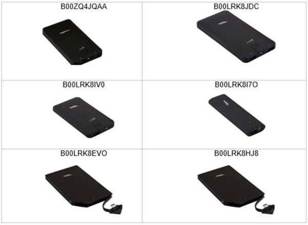 โดย AmazonBasics Power Bank รุ่นที่เรียกคืนในครั้งนี้ ประกอบด้วย รุ่นขนาดความจุ 16100 mAh, 10000 mAh, 5600 mAh, 3000 mAh, 2,000 mAh พร้อมสาย microUSB และรุ่น 3000 mAh พร้อมสาย microUSB ซึ่งเป็นโมเดลที่วางจำหน่ายตั้งแต่ปี 2014 - 2017 โดยทาง Amazon ได้ส่งอีเมลแจ้งลูกค้าที่ซื้อโมเดลดังกล่าวเป็นที่เรียบร้อยแล้ว พร้อมกับแนะนำให้หยุดใช้งานทันที และให้ติดต่อกลับเพื่อรับเงินคืนเต็มจำนวน
