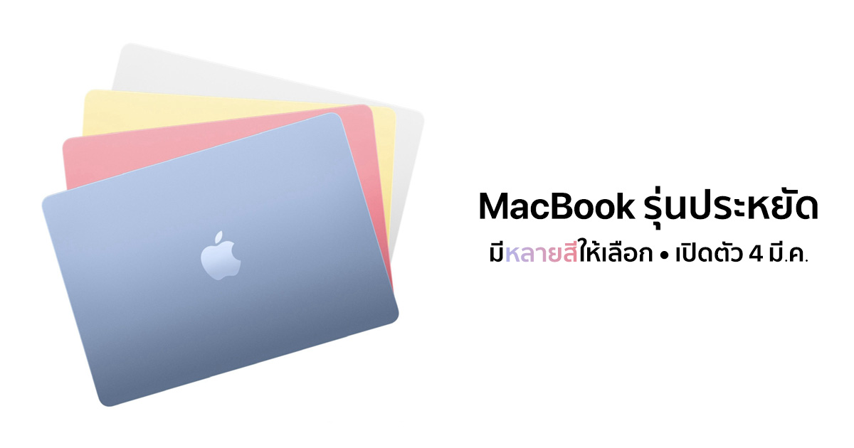 ล่าสุด มีรายงานว่า Apple จะเปิดตัว MacBook ราคาประหยัด รุ่นใหม่ ในงานอีเวนต์วันที่ 4 มีนาคม 2026 นี้ ซึ่งจุดเด่นสำคัญของรุ่นนี้คือ การมาพร้อม ตัวเลือกสีสันสดใสหลายสี แตกต่างจาก MacBook รุ่นปัจจุบันที่เน้นโทนเรียบหรู