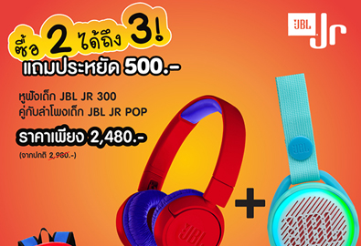 โปรโมชั่นซื้อคู่ถูกกว่า ไม่ต้องแลก เราแจกเอง เพียงซื้อหูฟัง JBL JR 300 หรือ 300 BT คู่ลำโพง JBL J...