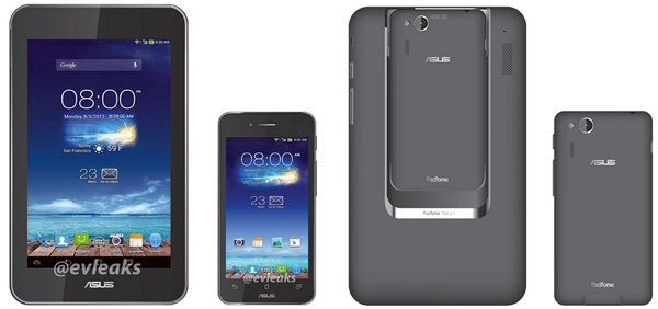 [9-ธันวาคม-2556] มีกำหนดการเปิดตัว Asus Padfone mini ในวันที่ 11 ธันวาคมนี้ ล่าสุด @evleaks ได้เผยภาพ Asus Padfone mini ออกมาให้ชมกันครับ โดยเผยว่า ตัวสมาร์ทโฟนนั้น จะมาพร้อมหน้าจอขนาด 4.3 นิ้ว ส่วนแท็บเล็ต มีขนาดอยู่ที่ 7 นิ้ว