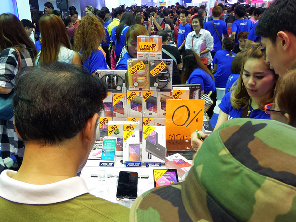 สำหรับในงาน Thailand Mobile Expo 2016 ครั้งนี้ สมาร์ทโฟนที่มียอดขายสูงที่สุดของเอซุสคือ Zenfone Max ด้วยแบตเตอรี่ภายในความจุถึง 5,000 mAh และประสิทธิภาพที่รองรับการทำงานได้ทุกรูปแบบภายในเครื่องเดียว จึงเป็นทางเลือกที่ลงตัวสำหรับผู้ต้องการสมาร์ทโฟนที่ใช้งานได้อย่างยาวนาน โดยสมาร์ทโฟน Zenfone Max มียอดขายสูงสุดในกลุ่มสมาร์ทโฟนเอซุส รองลงมาก็คือ Zenfone Selfie ซึ่งมีการจำหน่ายรุ่นที่เลือกใช้ฝาหลังแบบแฮร์ไลน์ เพิ่มความหรูหราให้กับตัวเครื่อง จากนั้นถึงเป็น Zenfone 2 Laser สมาร์ทโฟนสุดคุ้มค่าที่มาพร้อมเลเซอร์ออโต้โฟกัส