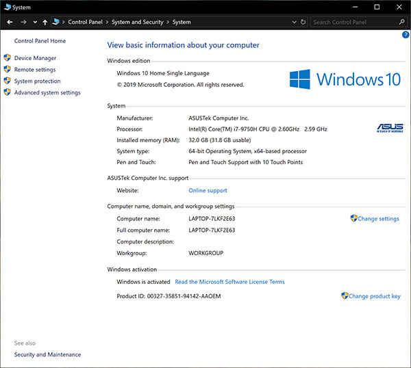 มาดูกันที่ประสิทธิภาพของตัวเครื่องกันบ้าง โดย ASUS ZenBook Pro Duo UX581 รุ่นนี้ ทำงานบนระบบปฏิบัติการ Windows 10 Home ของแท้ตั้งแต่แกะกล่อง ทำให้ผู้ใช้ไม่จำเป็นต้องติดตั้ง OS ใหม่ด้วยตนเอง
