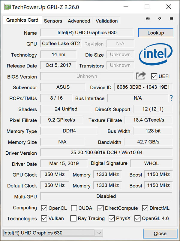 สำหรับการประมวลผลด้านกราฟิก จะมีทั้งการ์ดจอแบบ On-board อย่าง Intel UHD Graphics 630 รองรับการทำงานกราฟิกแบบ 2 มิติได้อย่างสบาย ๆ ส่วนกราฟิกแบบ 3 มิติรองรับได้ในระดับเบื้องต้น แต่ก็ไม่ใช่ปัญหาสำหรับ ASUS ZenBook Pro Duo UX581 รุ่นนี้เนื่องจากมีการ์ดจอแยกตัวแรงอย่าง NVIDIA GeForce RTX 2060 ที่มีประสิทธิภาพแรงเทียบเท่าคอมพิวเตอร์พีซี ซึ่งตอบโจทย์ต่อการใช้งานด้าน 3 มิติ หรือเล่นเกมกราฟิกสูงที่กินทรัพยากรตัวเครื่องได้อย่างสบาย ๆ