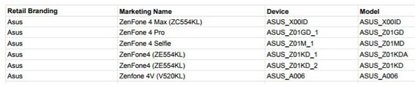 หลุดรายชื่อ Asus ZenFone 4 (2017) มีให้เลือกถึง 5 รุ่นย่อย พร้อมรุ่นปริศนา Asus ZenFone 4V และ ZenFone Pro