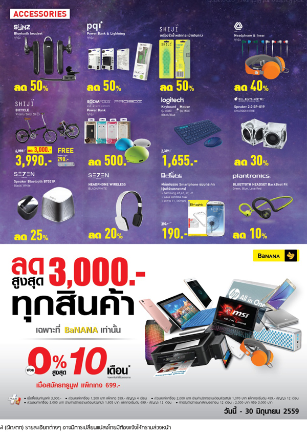 พบกับโปรโมชั่นดีๆที่ให้คุณเป็นเจ้าของสินค้า ไอที ได้ง่ายๆ ที่บานาน่าและบานาน่า โมบาย ทุกสาขาทั่วประเทศใกล้บ้านคุณ ตั้งแต่วันที่ 1 ถึง 30 มิถุนายน 2559 นี้เท่านั้น