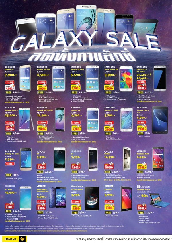 “Mid Year Sale” พบโปรโมชั่นสินค้าสมาร์ทโฟน “ลดทั้งแกแล็คซี่” โดยจัดส่วนลดพร้อมรับของแถมพิเศษสำหรับสมาร์ทโฟน Samsung Galaxy ทุกรุ่น อาทิเช่น Samsung Galaxy J7 ลดสูงสุด 5,000 บาท พร้อมรับของสมนาคุณมูลค่ารวม 2,535 บาท, Samsung Galaxy S7/S7 Edge ลดสูงสุด 3,500 บาท พร้อมรับของสมนาคุณมูลค่ารวม 2,175 บาท, Samsung Galaxy J5 ทั้งรุ่น 3G และ 4G ลดสูงสุด 4,000 บาท พร้อมรับของสมนาคุณมูลค่ารวม 2,290 บาท Surface Pro 4 ทุกรุ่นรับของสมนาคุณมูลค่ารวม 2,370 บาท นอกจากสมาร์ทโฟนและแท็บเล็ตแล้วยังจัดโปรโมชั่นหั่นราคา Gadget และ Accessories ลดสูงสุด 50% มากกว่า 20 แบรนด์ดัง พร้อมผ่อน 0% ทุกชิ้นทั้งร้านนาน 6 เดือนกับบัตรเครดิตกสิกรไทย