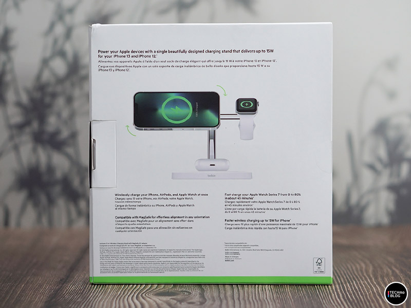 สำหรับอุปกรณ์ที่มีมาให้ในกล่อง ได้แก่ แท่นชาร์จไร้สาย Belkin BOOST↑CHARGE PRO 3-in-1, อะแดปเตอร์ AC และคู่มือการใช้งาน