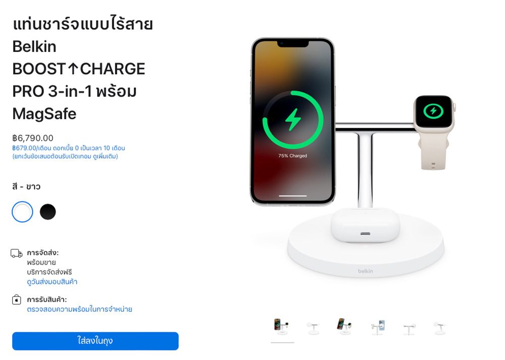 ปิดท้ายด้วยราคาของ แท่นชาร์จไร้สาย Belkin BOOST↑CHARGE PRO 3-in-1 with MagSafe เคาะราคาที่ 6,790 บาท มีให้เลือก 2 สีคือ สีขาว และสีดำ วางจำหน่ายแล้วบน Apple Store Online รวมถึงร้านตัวแทนจำหน่ายของ Belkin