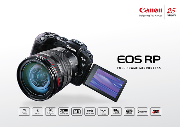 นายนิฐิวัฒน์ วัจนวรานันท์ หัวหน้ากลุ่มผลิตภัณฑ์ คอนซูเมอร์ อิมเมจจิ้ง (Imaging Consumer Product) บริษัท แคนนอน มาร์เก็ตติ้ง (ไทยแลนด์) จำกัด เผยว่า หลังจากกระแสตอบรับอย่างล้นหลาม ของกล้องมิเรอร์เลสฟูลเฟรมตระกูล EOS R ที่ปล่อยออกมาเมื่อปลายปี 2561 ประกอบกับสถานการณ์ตลาดกล้องมิเรอร์เลสฟูลเฟรมในประเทศ ที่เติบโตอย่างต่อเนื่อง แคนนอนจึงเอาใจสาวกกล้องตระกูลดังกล่าว และจริงจังกับตลาดกล้องฟูลเฟรม ด้วยการเปิดตัว “แคนนอน อีโอเอส อาร์พี” (Canon EOS RP) มิเรอร์เลสฟูลเฟรมล่าสุดในตระกูล EOS R ที่มาในน้ำหนักเพียง 485 กรัม เล็ก และเบาที่สุดในปัจจุบัน พร้อมเซ็นเซอร์ Dual Pixel CMOS ความละเอียด 26.2 ล้านพิกเซล โฟกัสฉับไวเพียง 0.05 วินาที ชิปประมวลผลภาพขั้นสูง DIGIC 8 ให้ภาพถ่ายคุณภาพยอดเยี่ยมในทุกสถานการณ์ พร้อมฟังก์ชั่นปรับแสงอัตโนมัติ (Auto Lighting Optimizer) ช่วยปรับสมดุลจุดที่สว่างที่สุด และมืดที่สุด ให้ภาพสวยสมบูรณ์แบบแม้ในสภาพย้อนแสง นอกจากนี้ Canon EOS RP ยังสามารถบันทึกภาพเคลื่อนไหวด้วยความคมชัดสูงสุดระดับ 4K ที่ 24p/25p และด้วยเทคโนโลยี Dual Pixel CMOS AF ที่จะทำให้ผู้ใช้สามารถโฟกัสได้อย่างแม่นยำ และราบรื่นไม่สะดุด