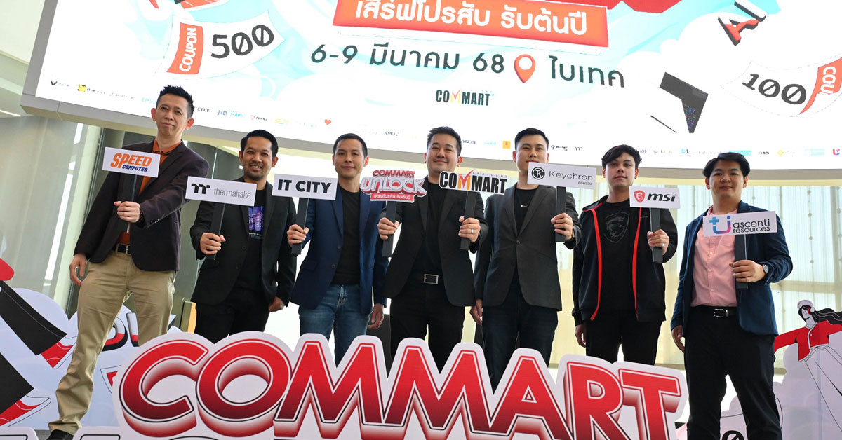 งาน COMMART UNLOCK จัดโดย บมจ.เออาร์ไอพี พร้อมด้วยพันธมิตรธุรกิจคับคั่ง อาทิ ACE, ASUS, AMD, AppleSheep, Ascenti, Banana, Bewell, Ergotrend, E-Quip, Epson, Gigabyte, iStudio by SPVI, Studio7, Keychron, IT City, J.I.B, Lenovo, MSI, Secretlab, SPEED Computer และ Thermaltake และ เครดิตบูโร ร่วมด้วย Media Partner ได้แก่ Business+, ChargeSPOT, eLeader, techhub, Beartai, ExtremeIT, iT24Hrs., Notebookspec, Overclockzone และ ชอบโปร เข้าชมงานฟรี! เดินทางสะดวกด้วย รถไฟฟ้า BTS สถานีบางนา 6-9 มีนาคม 2568 เวลา 10.00 น. – 21.00 น. ณ EH 98 - 99 ศูนย์นิทรรศการและการประชุมไบเทค บางนา