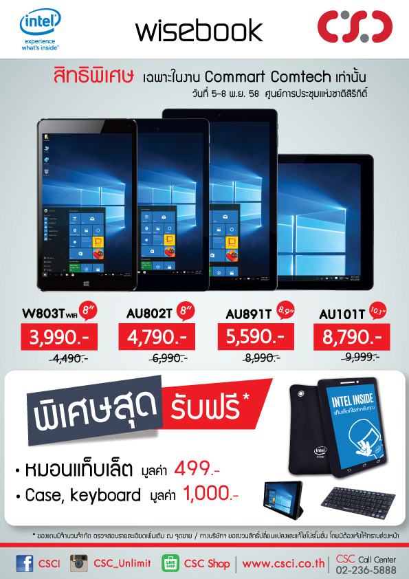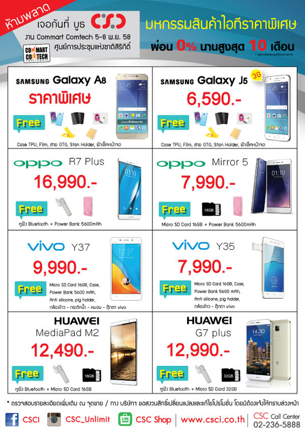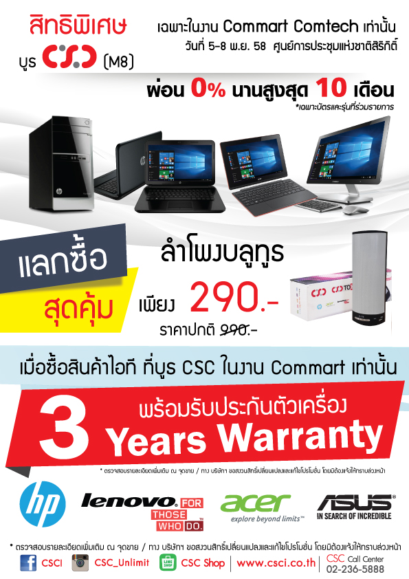 ห้ามพลาด! กับโปรโมชั่นสุดพิเศษจาก CSC (M8/1, M9) ที่งาน Commart Comtech 2015 ณ.ศูนย์ประชุมแห่งชาติสิริกิติ์ วันที่ 5-8 พฤศจิกายน นี้ พบสินค้าดีมีคุณภาพในราคาประหยัดพร้อมของแถมจัดเต็ม อาทิเช่น