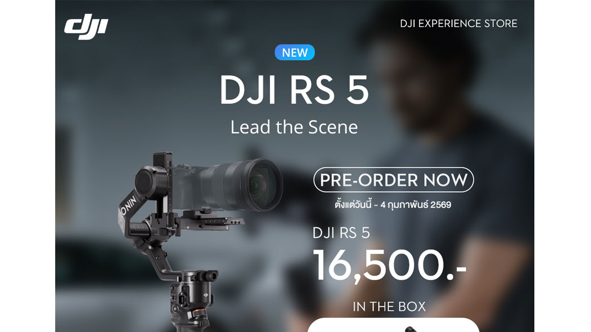 DJI RS 5 พร้อมให้สั่งซื้อตั้งแต่ 29 มกราคม 2569 ที่ DJI Expereince Store และพาร์ทเนอร์ค้าปลีกที่ได้รับอนุญาต โดยเริ่มจำหน่ายตั้งแต่วันนี้ในรูปแบบต่อไปนี้: