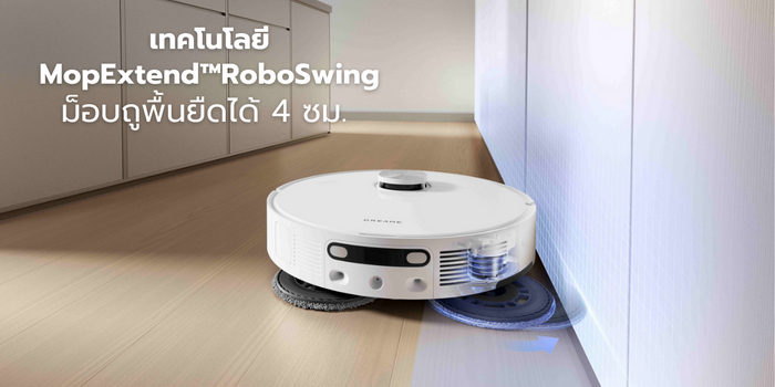 เทคโนโลยี MopExtend™RoboSwing ที่อัพเกรดให้ดีขึ้นต่อการทำความสะอาดที่ล้ำลึกทุกซอกมุมด้วยการออกแบบให้ม็อบถูพื้นยืดออก สามารถเอียงขยับเพื่อการเข้าถึงซอกมุมได้ลึกขึ้นถึง 4 ซม สามารถทำความสะอาดได้ตามบริเวณขอบผนัง รอบขาโต๊ะ ขาเก้าอี้ หรือใต้เฟอร์นิเจอร์ได้เป็นอย่างดี