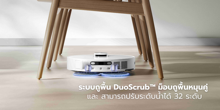 ระบบถูพื้น DuoScrub™ ม็อบถูพื้นหมุนคู่ และสามารถปรับระดับน้ำได้ 32 ระดับ หมดกังวลการเกิดคราบน้ำจากม็อบทำให้การใช้งานสะดวกมากยิ่งขึ้น