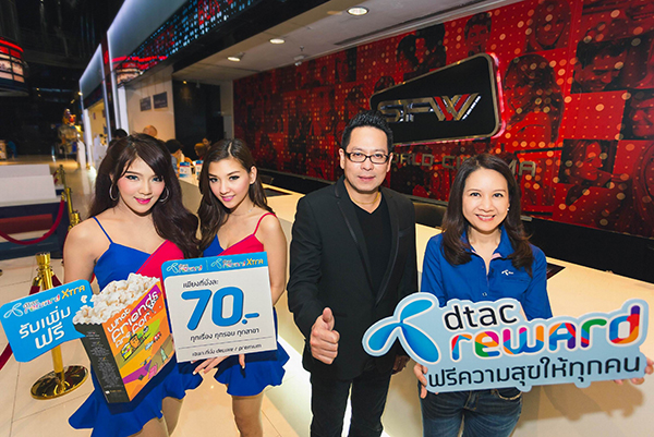 23 กรกฎาคม 2558 – นางสาวเพ็ญพงา สุทธิมณฑล ผู้อำนวยการฝ่ายบริหารลูกค้า บริษัท โทเทิ่ล แอ็คเซ็ส คอมมูนิเคชั่น จำกัด (มหาชน) หรือ ดีแทค และ นายเดชา ธรรมชัยพิเนต ผู้จัดการฝ่ายพัฒนาธุรกิจ บริษัท เอส เอฟ คอร์ปอเรชั่น จำกัด (มหาชน) ออกแคมเปญ “ดูหนังสุดคุ้มเพียง 70 บาท” เพื่อมอบฟรีความสุขและตอบโจทย์ลูกค้าดีแทคและแฮปปี้ที่รักการชมภาพยนตร์ ร่วมกันมอบสิทธิพิเศษให้กับลูกค้าดีแทครีวอร์ด เอ็กซ์ตรา และ ลูกค้าดีแทครีวอร์ดรับสิทธิ์ชมภาพยนตร์เพียงที่นั่งละ 70 บาท ทุกเรื่อง ทุกรอบ ที่โรงภาพยนต์ในเครือเอสเอฟซินีม่า ทุกสาขา โดยลูกค้าดีแทครีวอร์ดสามารถรับสิทธิ์ได้ทุกเดือน เดือนละ 1 สิทธิ์ และลูกค้าดีแทครีวอร์ด เอ็กซ์ตราสามารถรับสิทธิ์ได้ทุกเดือน เดือนละ 2 สิทธิ์ พิเศษ! สำหรับลูกค้าดีแทครีวอร์ด เอ็กซ์ตรา รับเพิ่มฟรี Popcorn size M รสใดก็ได้ที่จุดขาย สามารถรับสิทธิ์ได้ตั้งแต่วันนี้ ไปจนถึงวันที่ 31 มกราคม 2559 ลูกค้าดีแทคและแฮปปี้สามารถกดตรวจสอบสถานะว่าคุณคือ ดีแทครีวอร์ด หรือ ดีแทครีวอร์ด เอ็กซ์ตรา ง่ายๆเพียง กด*140# และโทรออก (ฟรี) รายละเอียดเพิ่มเติมได้ที่ www.dtac.co.th/dtacreward หรือที่โรงภาพยนตร์ในเครือเอสเอฟทุกสาขา