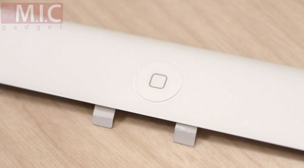 เริ่มกันที่กรอบด้านหน้า กับปุ่ม Home ที่มีการออกแบบที่เหมือนเดิม นั่นคือ เป็นลักษณะกลมๆ แบบเดียวกับบน ไอแพด 2 (iPad 2)