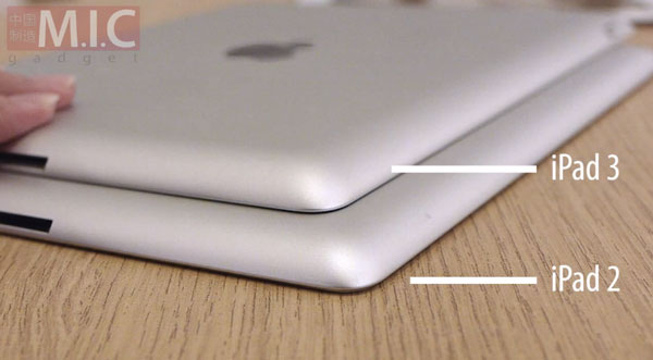 คำว่า หนากว่าในทีนี้ จริงๆ แล้ว ไอแพด 3 (iPad 3) จะหนากว่า ไอแพด 2 (iPad 2) เพียงแค่ 0.1 มิลลิเมตรเท่านั้น เพื่อให้รองรับกับวัสดุภายในตัวเครื่อง ที่จะมีขนาดใหญ่ขึ้น นอกจากนี้ ไอแพด 3 (iPad 3) จะมีการปรับส่วนโค้งของตัวเครื่องเล็กน้อยด้วย แต่โดยรวมๆ แล้ว ไอแพด 3 (iPad 3) ก็จะมีรูปลักษณ์ที่ใกล้เคียงกับ ไอแพด 2 (iPad 2) ครับ