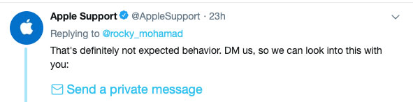 ด้าน Apple ได้รับทราบปัญหาดังกล่าวแล้ว พร้อมกับกล่าวสั้น ๆ ว่า เป็นอาการที่ไม่น่าจะเกิดขึ้นได้ แต่ขอให้ทางเจ้าของเครื่องติดต่อกลับที่ Apple เพื่อนำเครื่องมาตรวจสอบหาสาเหตุกันต่อไป