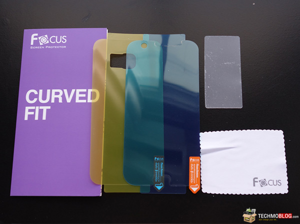โดยภายในกล่อง ประกอบด้วย ฟิล์มลงโค้ง Focus Curved Fit ทั้งด้านหน้า และด้านหลัง, แผ่นพลาสติกแข็งสำหรับไล่ฟองอากาศขณะติด และผ้าเช็ดหน้าจอ