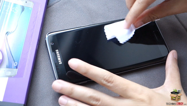 ก่อนจะทำการติดฟิล์ม จะต้องเช็ดหน้าจอให้สะอาดเสียก่อน เพื่อลบรอยนิ้วมือ หรือฝุ่นผงต่าง ๆ