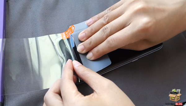 สำหรับฟิล์มลงโค้ง Focus Curved Fit นั้น ทำมาจากวัสดุประเภท TPU (Thermoplastic Polyurethanes) ซึ่งจะมีผิวสัมผัสคล้ายยาง และเนื้อยืดหยุ่นกว่าฟิล์มทั่ว ๆ ไป โดยจะเห็นว่า ขนาดของฟิล์มนั้น มีความพอดีกับตัวเครื่อง นอกเหนือจากปุ่ม Home และรูกล้องถ่ายรูปแล้ว ยังคลุมถึงขอบด้านข้างตัวเครื่องอีกด้วย