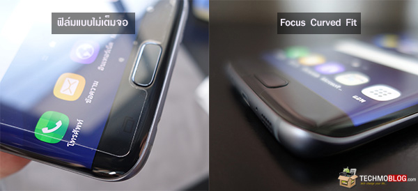เมื่อเปรียบเทียบการแปะฟิล์มแบบทั่วไป (ซ้าย) และฟิล์มลงโค้ง Focus Curved Fit (ขวา) บน Samsung Galaxy S7 edge จะเห็นได้ว่า มีความแตกต่างกันอย่างมากเลยทีเดียว ซึ่งฟิล์มลงโค้ง จะมีความสวยกว่า เนียนกว่า คล้ายกับยังไม่ได้ติดฟิล์มอีกด้วย