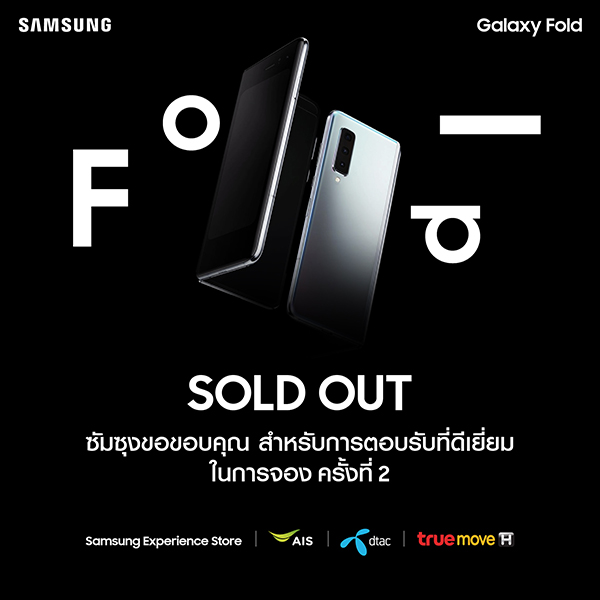 ซัมซุง ขอบคุณสำหรับการตอบรับที่ดีเยี่ยมของคนไทยที่มีต่อ ซัมซุง กาแลคซี่ โฟลด์ โดยในฐานะที่ประเทศไทยเป็นประเทศประเทศอันดับต้นๆ ของโลกที่ได้รับเลือกให้วางจำหน่ายอย่างเป็นทางการ ทำให้จำนวนกาแลคซี่ โฟลด์ ที่นำเข้ามาในประเทศไทยมีจำนวนจำกัด ซึ่งจากกระแสตอบรับของลูกค้าในประเทศไทยในการเปิดจองครั้งแรก รวมถึงความประทับใจในความพรีเมี่ยมและนวัตกรรมที่โดดเด่น จากลูกค้าที่ได้รับเครื่องไปเมื่อวันที่ 16 ตุลาคมที่ผ่านมา ทำให้เชื่อมั่นว่า กาแลคซี่ โฟลด์ จะเป็นสมาร์ทโฟนที่มอบประสบการณ์ที่ดีที่สุดที่เคยมีมา ทั้งนี้ ซัมซุงจะดำเนินการจัดหาสินค้าเพิ่มเติมโดยเร็ว เพื่อรองรับความต้องการของลูกค้าให้ดีที่สุด