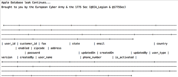 [15-มกราคม-2557] กลุ่มแฮกเกอร์ ที่ใช้ชื่อว่า 1775 Sec และ European Cyber Army ได้เผยข้อมูลผ่านทาง ทวิตเตอร์ ครับว่า ได้ทำการเจาะข้อมูลของผู้ใช้แอปเปิล ได้เป็นผลสำเร็จครับ หลังจากที่ได้ส่งข้อความเตือนแอปเปิล เรื่องระบบความปลอดภัย แต่แอปเปิลไม่สนใจ