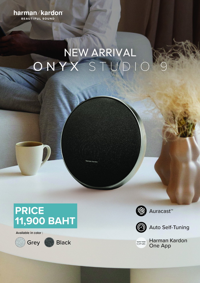 ยกระดับประสบการณ์เสียงเหนือระดับในทุกวัน สัมผัสเสียงคุณภาพสูงกับ Harman Kardon Onyx Studio 9 ลำโพงไร้สาย ดีไซน์หรูสำหรับใช้งานในบ้าน ที่มาพร้อมเสียงร้องคมชัด โทนเสียงสูงสดใส และเบสลึก ทำให้เพลงโปรดของคุณมีชีวิตชีวาอย่างน่าประทับใจ เทคโนโลยี Constant Sound Field ช่วยขยายมิติ และเพิ่มความละเอียดของเสียง ทำให้ทุกโน้ตดนตรีชัดเจนและเต็มอิ่ม ตัวลำโพงออกแบบด้วยหูหิ้วอะลูมิเนียมรีไซเคิลถึง 90% แข็งแรง และพกพาสะดวก พร้อมแบตเตอรี่ในตัวใช้งานได้ยาวนานถึง 8 ชั่วโมง และพอร์ต USB สำหรับชาร์จอุปกรณ์ขณะฟังเพลง นอกจากนี้ระบบ Self-Tuning ยังช่วยปรับเสียงอัตโนมัติตามสภาพแวดล้อม เพื่อมอบประสิทธิภาพเสียงที่ดีที่สุดในทุกตำแหน่ง