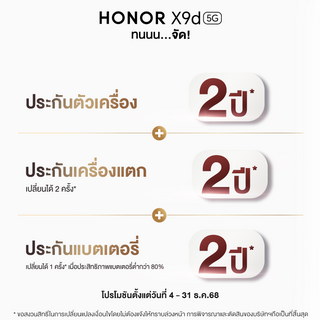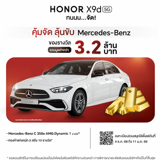 โปรโมชั่นและสิทธิ์ลุ้นรางวัลใหญ่ เปิดให้ร่วมตั้งแต่วันที่ 4 ธันวาคม 2568 ถึง 11 มกราคม 2569 ติดตามรายละเอียดเพิ่มเติมและสั่งซื้อได้ที่ Shopee: https://url.in.th/CniYY, Lazada: https://url.in.th/oLgkp, TikTok: https://url.in.th/aAVAJ หรือ HONOR Experience Store ทุกสาขา และร้านค้าตัวแทนจำหน่ายทั่วประเทศ