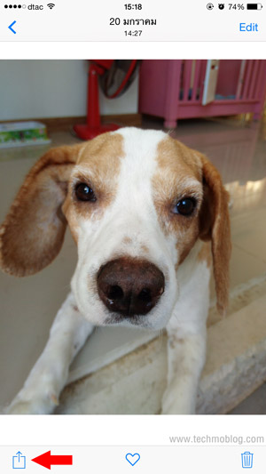 อันดับแรก ให้เข้าไปที่แอปฯ Photos แล้วเลือกรูปที่ต้องการจะเพิ่มเข้าไปในรายชื่อผู้ติดต่อ จากนั้นคลิกที่ไอคอน Share