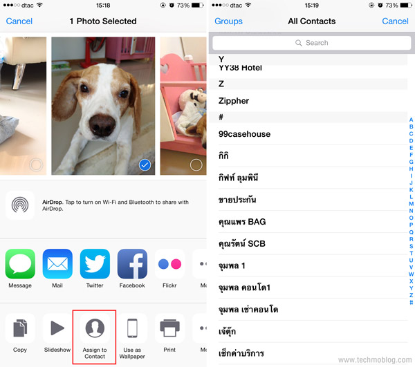เลือก Assign to Contact และเลือกรายชื่อที่ต้องการจะใส่รูป