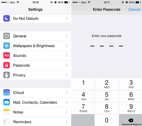 ก่อนที่จะสร้างปุ่มกดแบบอาร์ตๆ ได้นั้น จะต้องเปิดใช้งาน Passcode กันก่อนครับ สามารถเข้าไปตั้งค่าได้ที่ Settings > Passcode