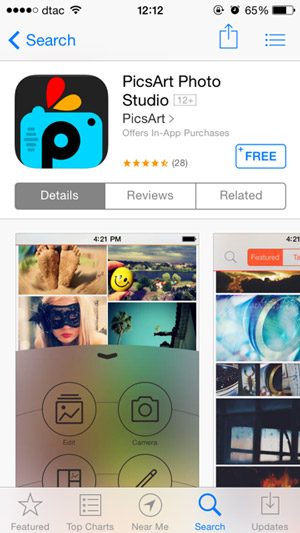 เข้า App Store แล้วดาวน์โหลดแอพพลิเคชั่นที่มีชื่อว่า PicsArt ครับ สามารถดาวน์โหลดได้ฟรี