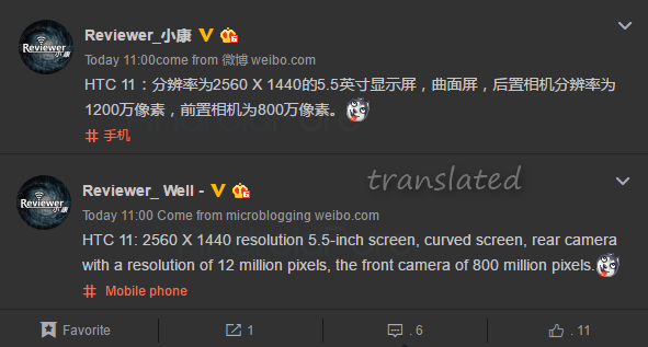 ครั้งนี้ไม่ใช่ครั้งแรกที่มีข้อมูลของ HTC 11 ถูกเปิดเผยออกมา เนื่องจากก่อนหน้านี้บน Webibo เคยมีรายงานในเรื่องของสเปก HTC 11 มาแล้ว โดยระบุว่า มือถือเรือธงรุ่นดังกล่าวจะมาพร้อมกับหน้าจอแสดงผลแบบขอบโค้งขนาด 5.5 นิ้ว พร้อมกล้องดิจิทัลด้านหน้าความละเอียด 8 ล้านพิกเซล และกล้องหลังความละเอียด 12 ล้านพิกเซลด้วย