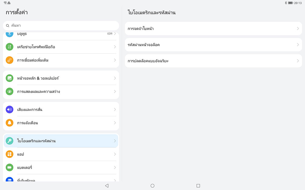 ถึงแม้ว่า HUAWEI MatePad Pro 12.6-inch รุ่นนี้ จะไม่รองรับการสแกนลายนิ้วมือ แต่รองรับการจดจำใบหน้าสำหรับปลดล็อกตัวเครื่อง รวมถึงรองรับการปลดล็อกอัจฉริยะ ซึ่งจะเป็นการปลดล็อกผ่านทางอุปกรณ์ Bluetooth อย่างเช่น สมาร์ทวอช โดยไม่ต้องยืนยันรหัสผ่านหรือสแกนใบหน้า