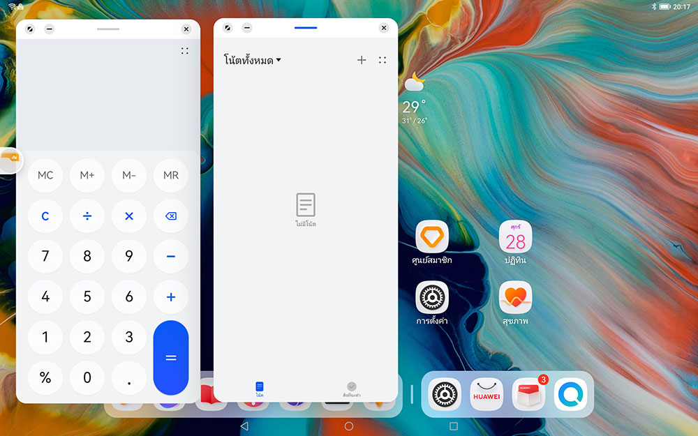 ฟีเจอร์ Multi-Window เปิดใช้งานหน้าต่างได้สูงสุด 4 แอป 4 หน้าจอ และสามารถเก็บแบบหน้าต่างลอยในแท็บเมนูด้านข้างได้สูงสุด 10 หน้าต่าง